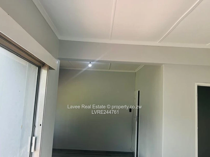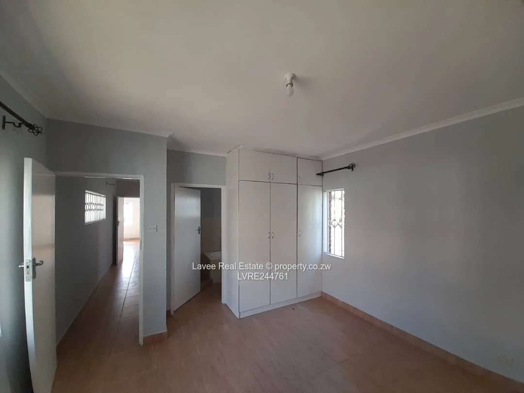 Charming 3-bedroom, 1-bath family home for rent in quiet Mabelreign, Harare West — set on a generous 900 m² erf. As seen in the photos, the single-storey rendered house with a red-tiled roof sits behind secure high walls and offers a large front garden with a brick-paved driveway with ample parking. The interior has been freshly painted in neutral tones and features modern grey wood-look flooring, bright rooms, a straight corridor linking the bedrooms, and a sliding glass door that brings light into the living area and opens onto the yard. Ideal for a small family or professionals seeking space and privacy, the property includes a swimming pool for weekend relaxation (pool not shown in these images). There is a 3kV back up power system to ensure constant electricity supply.